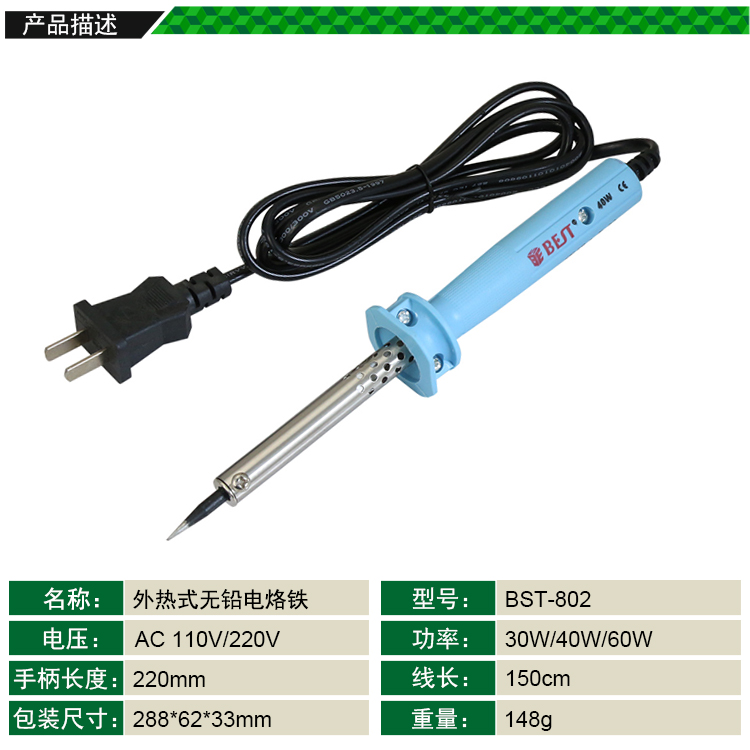 返回當(dāng)前位置: 首頁(yè) / 產(chǎn)品中心 / BST-802 外熱式無(wú)鉛電烙鐵 (30W/40W/60W)