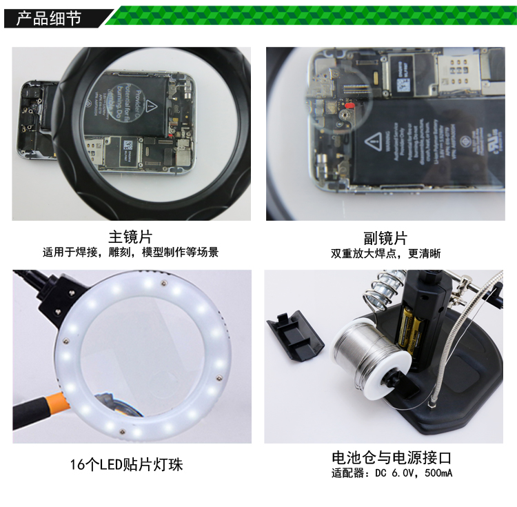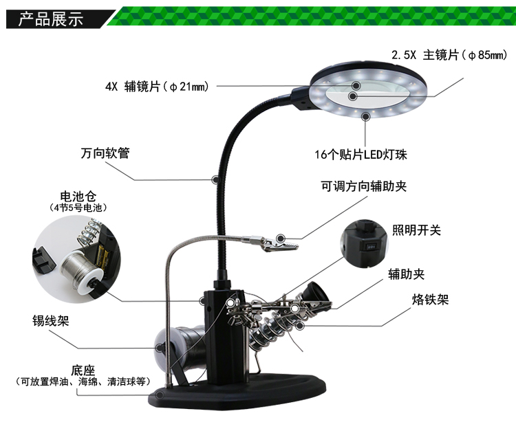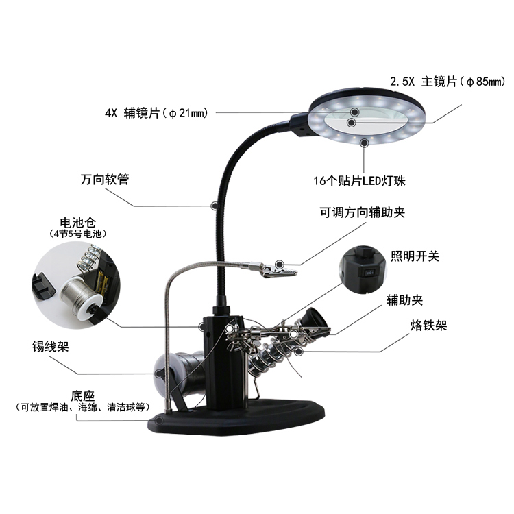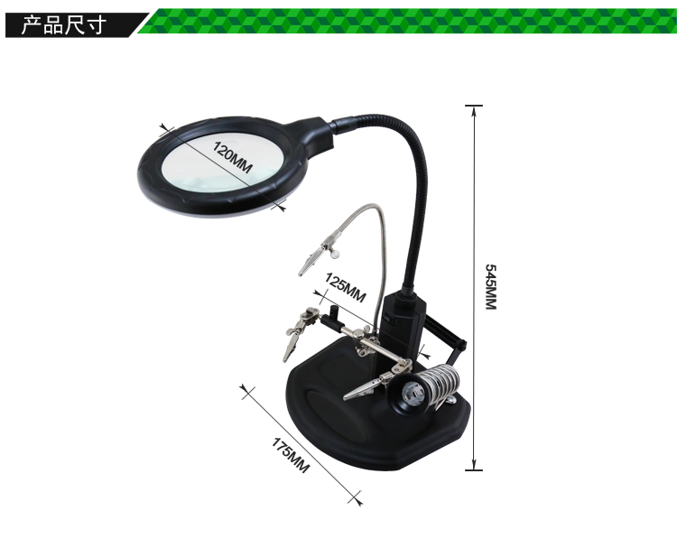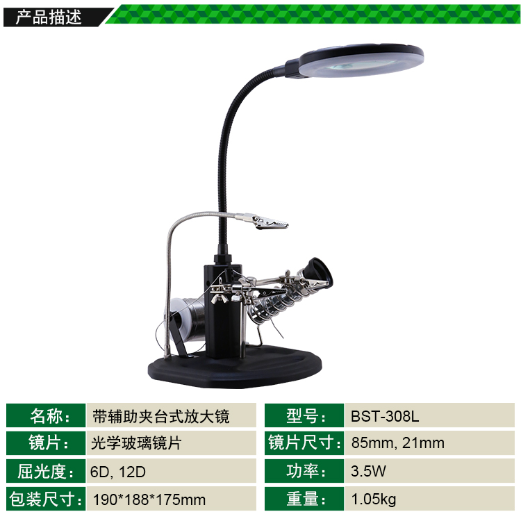 ? 產(chǎn)品名稱: 帶輔助夾臺式放大鏡