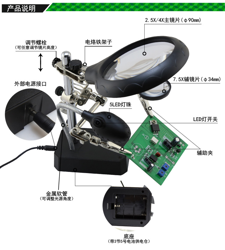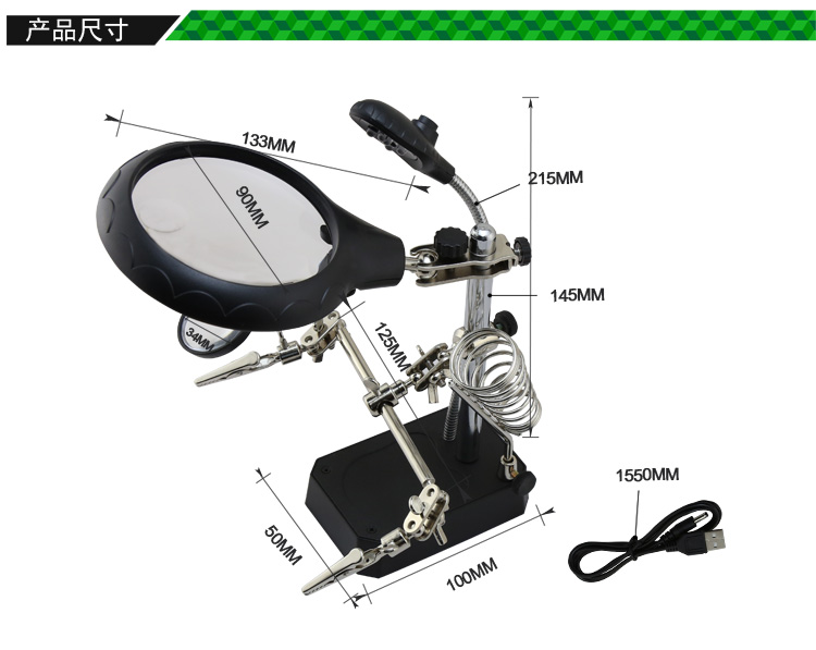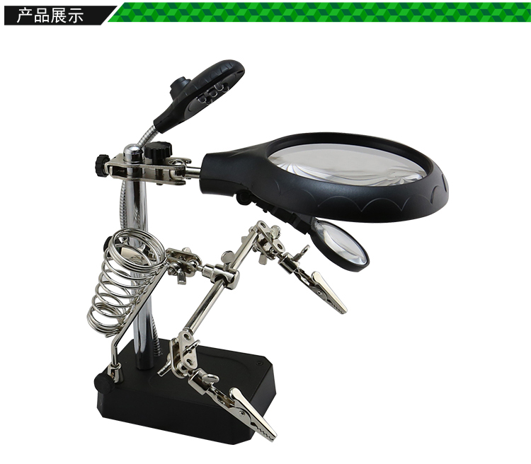 ? 產(chǎn)品名稱: 帶輔助夾臺式放大鏡