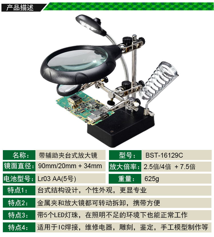 返回當前位置: 首頁 / 產(chǎn)品中心 / BST-16129C 帶輔助夾臺式放大鏡 焊接放大鏡