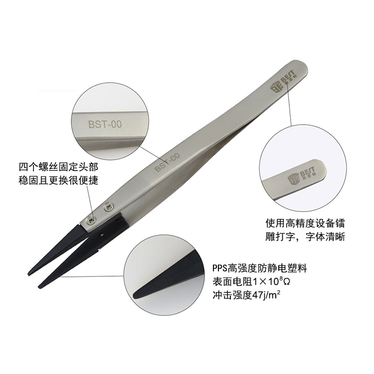 返回當前位置: 首頁 / 產(chǎn)品中心 / BST-00 防靜電鑷子可換頭 碳纖維塑料換頭鑷子