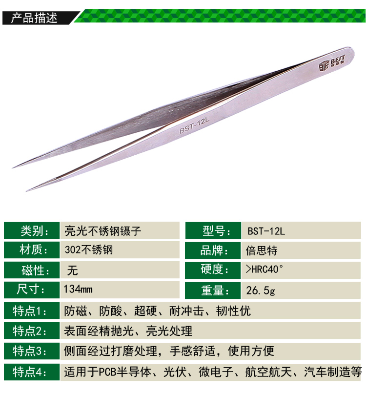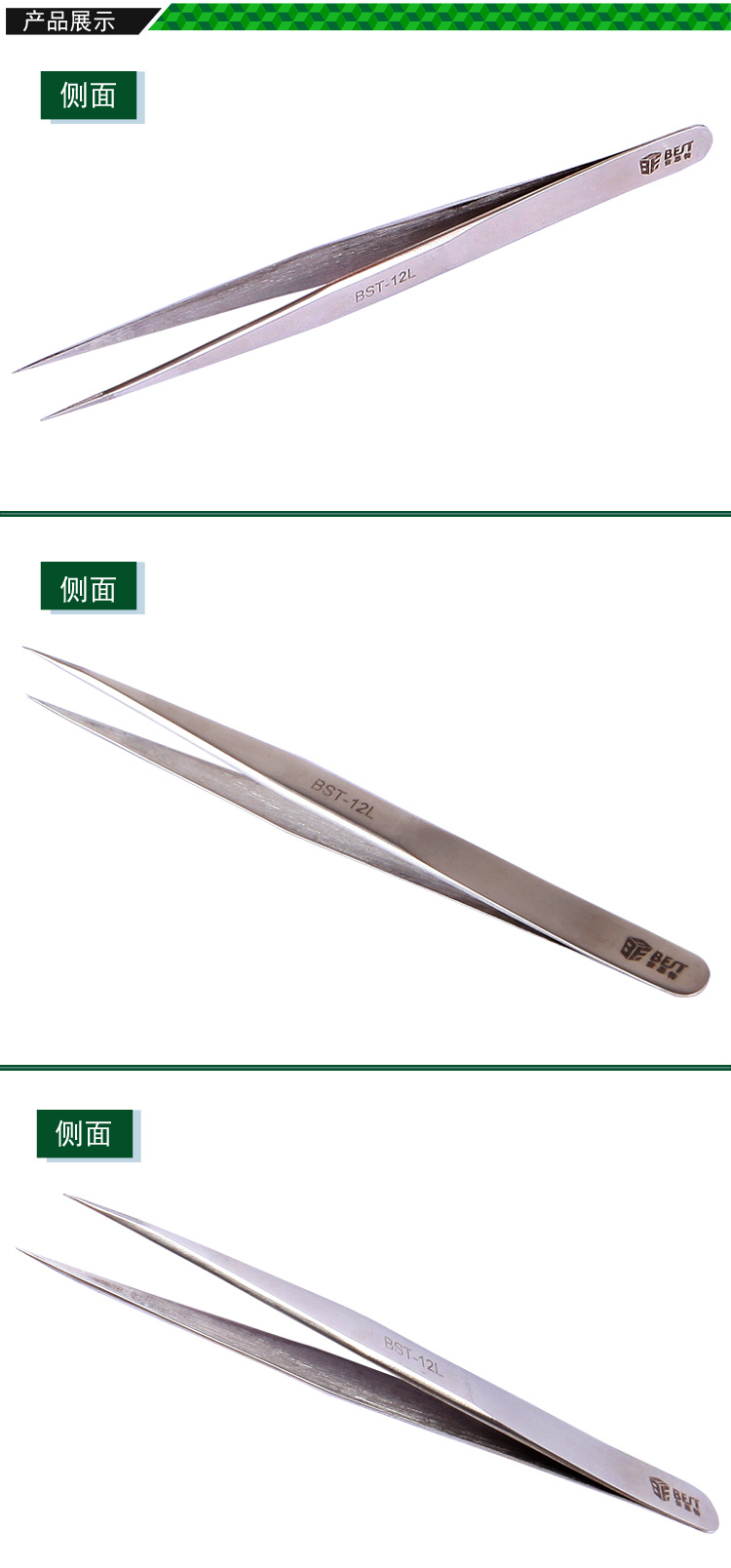 ? 產品名稱: 亮光鑷子 不銹鋼鑷子? 產品型號: BST-12L? 產品類別: 鑷子系列