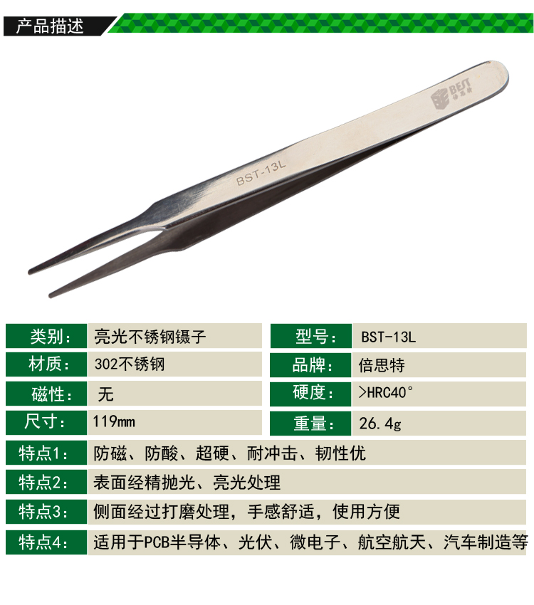 返回當前位置: 首頁 / 產(chǎn)品中心 / BST-13L 亮光鑷子 不銹鋼鑷子