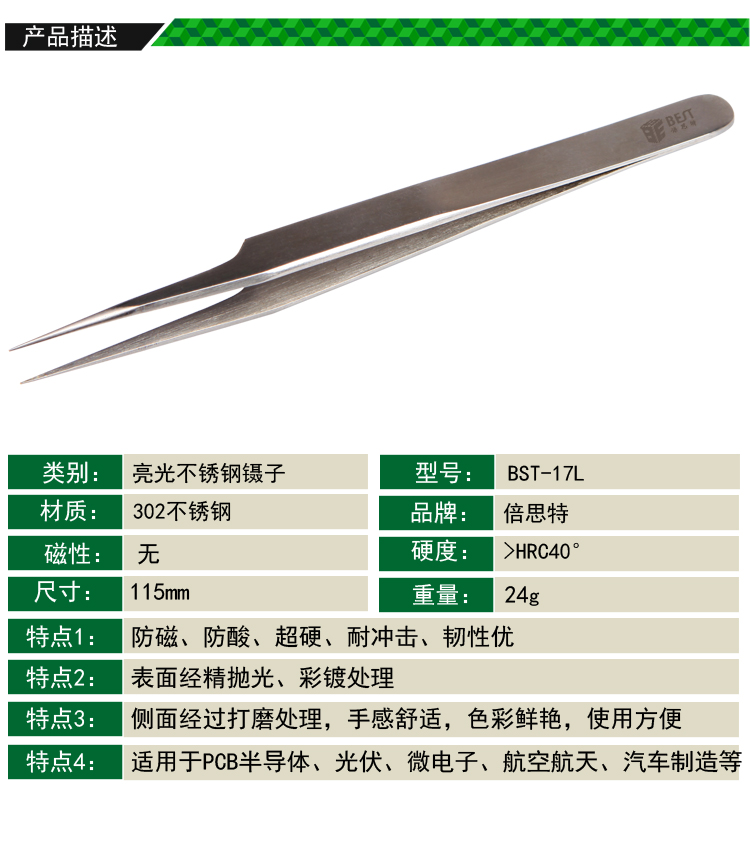 返回當(dāng)前位置: 首頁(yè) / 產(chǎn)品中心 / BST-17L 亮光鑷子 不銹鋼鑷子