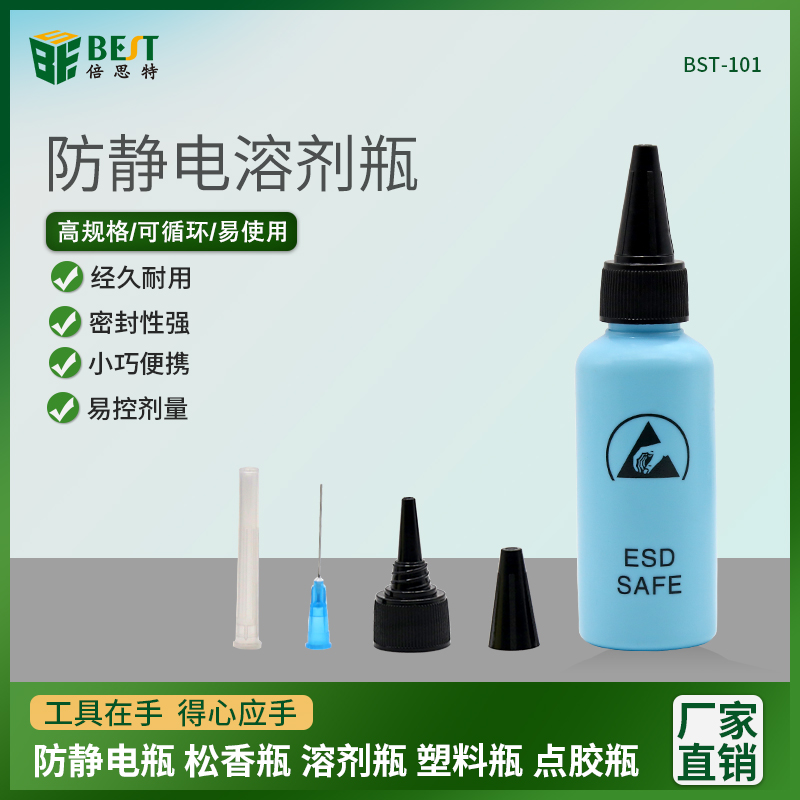 BST-101 防靜電溶劑瓶 防靜電瓶 酒精瓶 松香瓶溶劑瓶 塑料瓶 防靜電針頭瓶 點膠瓶