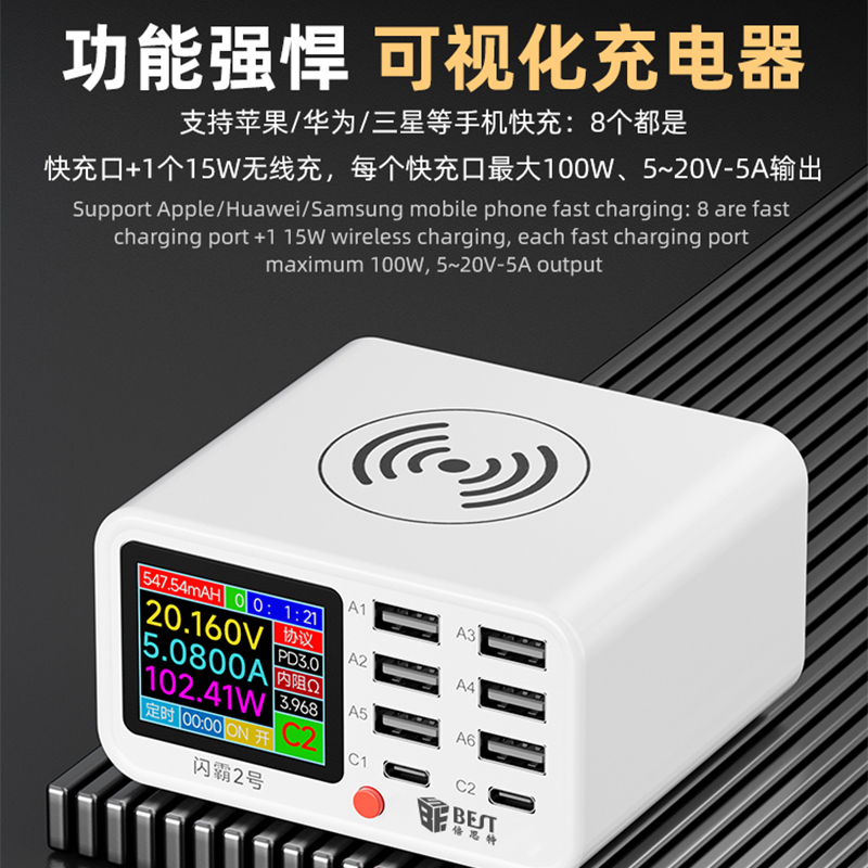 返回當(dāng)前位置: 首頁(yè) / 產(chǎn)品中心 / BST-S2 閃霸二號(hào) 多功能8口可視化USB充電器 極速快充 無(wú)線快充 檢測(cè)維修一體數(shù)顯充電器