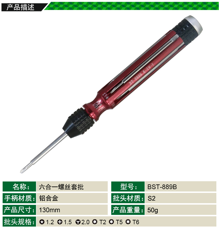 返回當(dāng)前位置: 首頁 / 產(chǎn)品中心 / BST-889B 多功能手機(jī)拆機(jī)工具6合1 可換頭螺絲套批