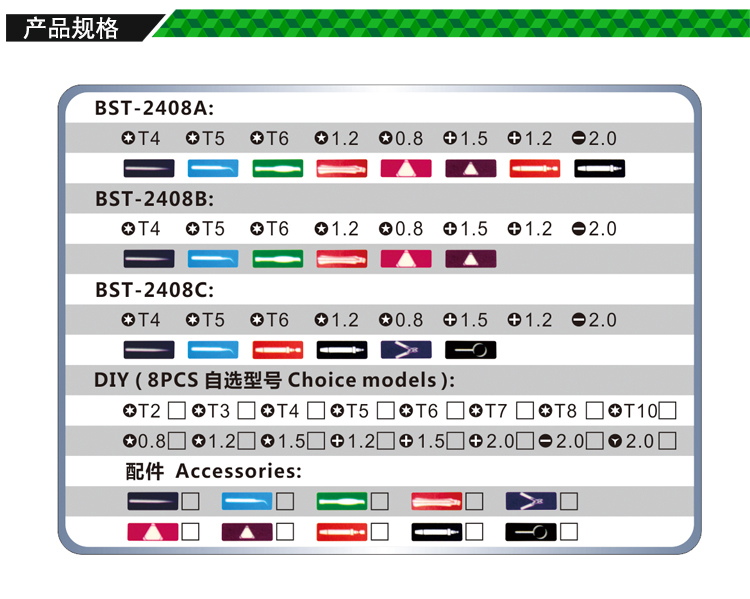 返回當(dāng)前位置: 首頁 / 產(chǎn)品中心 / BST-2408 多功能套批 螺絲刀套裝 拆機工具 16pcs