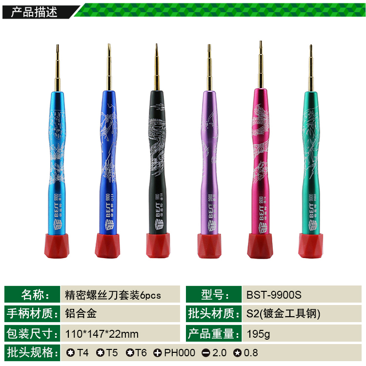 返回當前位置: 首頁 / 產(chǎn)品中心 / BST-9900S 電子電訊工具6pcs 螺絲套批 螺絲刀套裝