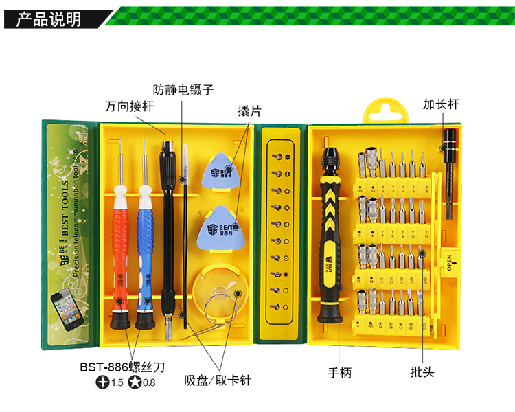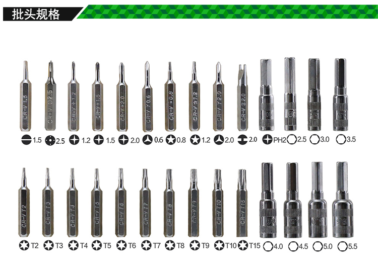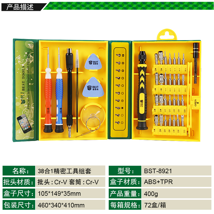 返回當(dāng)前位置: 首頁 / 產(chǎn)品中心 / BST-8921 精密工具組套38pcs 高精密螺絲套批