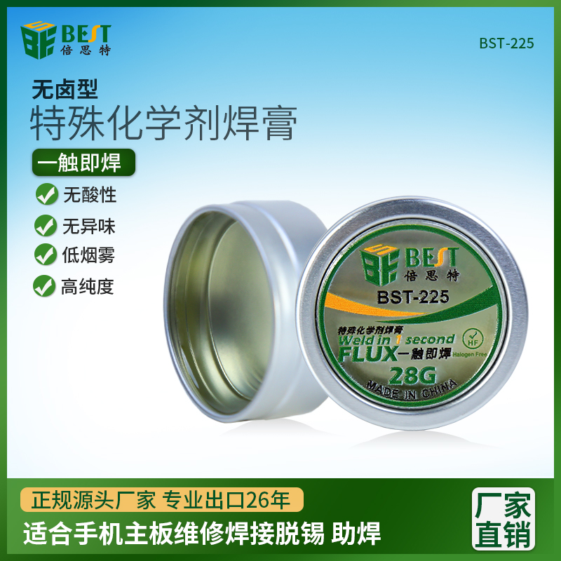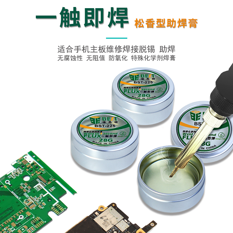 BST-225 焊接助焊劑 特殊化學(xué)劑焊膏 一觸即焊松香型助焊膏 環(huán)保無鉛無鹵素焊油 鋁盒透明低溫助焊松香