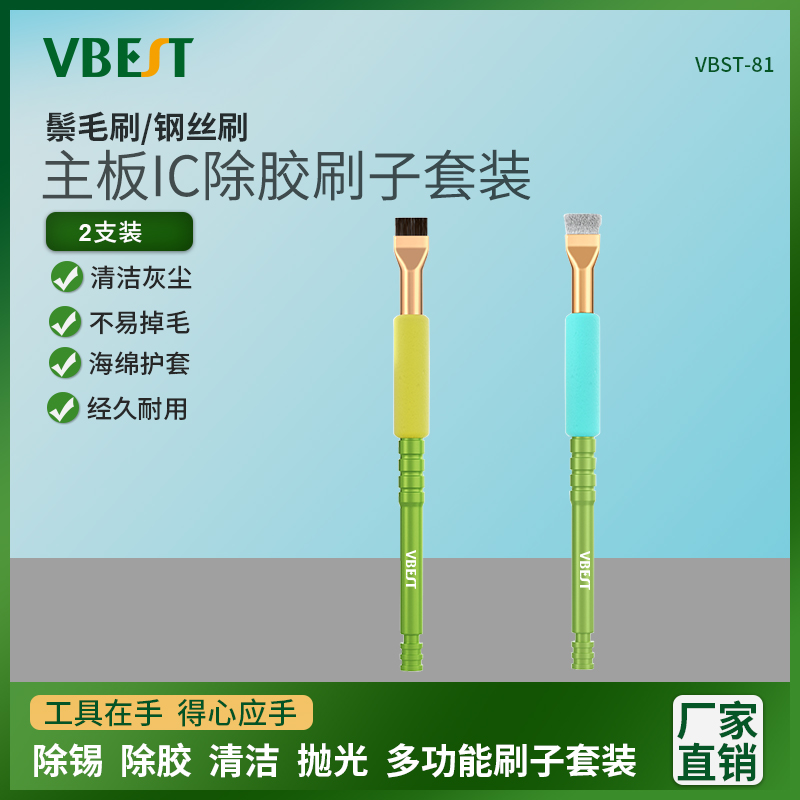 返回當(dāng)前位置: 首頁 / 產(chǎn)品中心 / VBST-81 主板IC除膠刷子套裝 不銹鋼絲硬毛刷豬鬢毛刷 IC主板除膠清理灰塵海棉套手柄刷 手機(jī)焊盤清理毛刷 IC清潔焊油除黑膠硬毛刷兩支裝