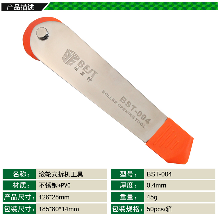 返回當前位置: 首頁 / 產(chǎn)品中心 / BST-004 滾輪式拆機工具 不銹鋼雙頭撬片