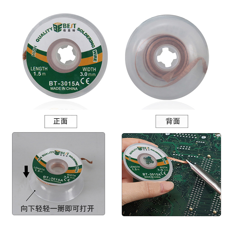 返回當(dāng)前位置: 首頁 / 產(chǎn)品中心 / BST-3015A 吸錫線 非鹵素低殘渣免清洗吸錫帶 清理焊盤必備