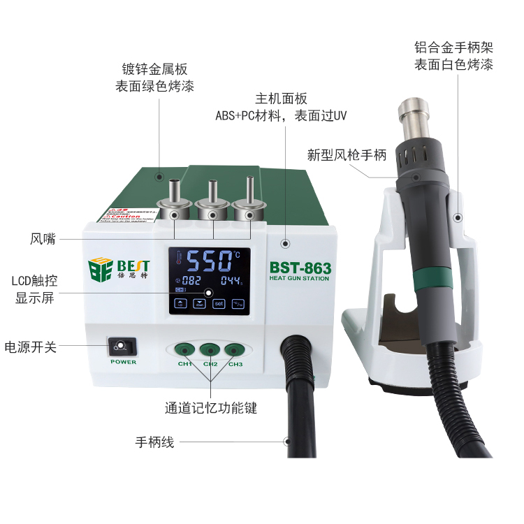 返回當(dāng)前位置: 首頁(yè) / 產(chǎn)品中心 / BST-863 智能數(shù)顯觸控恒溫?zé)犸L(fēng)槍 無(wú)鉛調(diào)溫?cái)?shù)顯拆焊熱風(fēng)槍 1200W