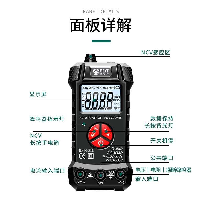 返回當(dāng)前位置: 首頁 / 產(chǎn)品中心 / BST-831L 全自動萬用表無需換擋識別數(shù)字傻瓜式萬能表 小型便攜式高精度智能萬用表 家用迷你電工儀表