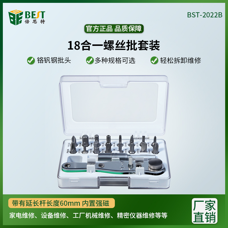 返回當(dāng)前位置: 首頁 / 產(chǎn)品中心 / BST-2022B 雙向棘輪18合一螺絲批套裝